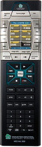 Monster Home Theater Controller AVL300 Unique & stylish ergonomic design. Table-top charging station allows use of remote while charging the supplied lithium-ion battery.The AVL300 Remote from Monster Cable has the capability to replace all of your existing remotes. Unlike other remotes on the market, the AVL300''s Component and Activity buttons send multiple commands to multiple devices automatically, allowing true one-touch control. You can control even the most complex AV systems, and extend their functionality with the special feature buttons. The unique ergonomic design of the AVL300 features an intuitive layout of easy-to-read large tactile buttons. Thanks to the special illuminated backlit buttons, this remote is easy to read in the dark. One-touch control of any home entertainment system!Easy to Use Best of all, there is no complex programming required to use this remote. Use your computer and the online setup wizard to easily configure home theater functions to create home entertainment activities. The Intelligent Monster Tracking Memory remembers what each component is doing, so when you switch activities your gear responds accurately. This functionality is easy enough for the whole family. You don''t have to be a technophile to use the AVL300. Everyone from the kids to the babysitter can command home entertainment with ease! Convenient One-Remote Control and Functionality The AVL300 provides convenient one-remote control and functionality. This means that y